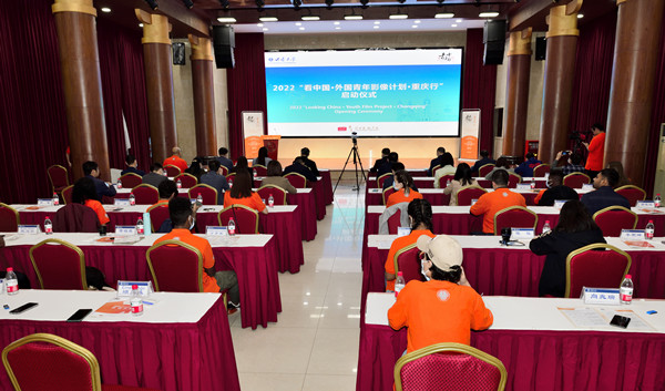 此次活动,来自俄罗斯等9个国家的12名在华外国青年,将于5月19-25日深入重庆12个区县,围绕事先准备好的选题进行拍摄,探寻人与自我、与社会、与自然之间的关系,展重庆风尚,观山城风光。相关区县负责人在启动仪式上用短片的形式介绍了各自区县的人文地理风光,并现场宣布该区县拍摄项目启动。
