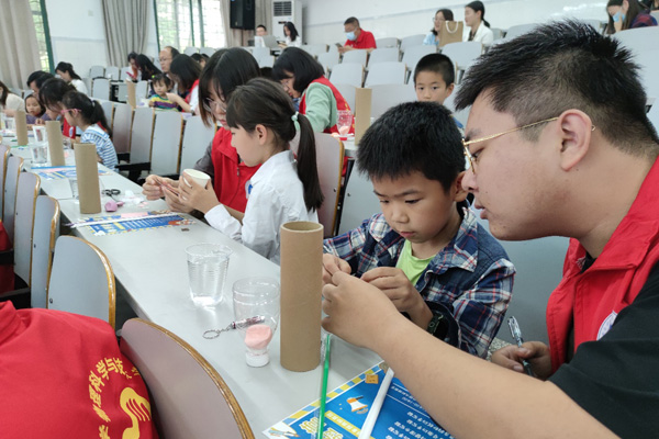 志愿者教孩子动手做科普。betway88西汉姆联供图