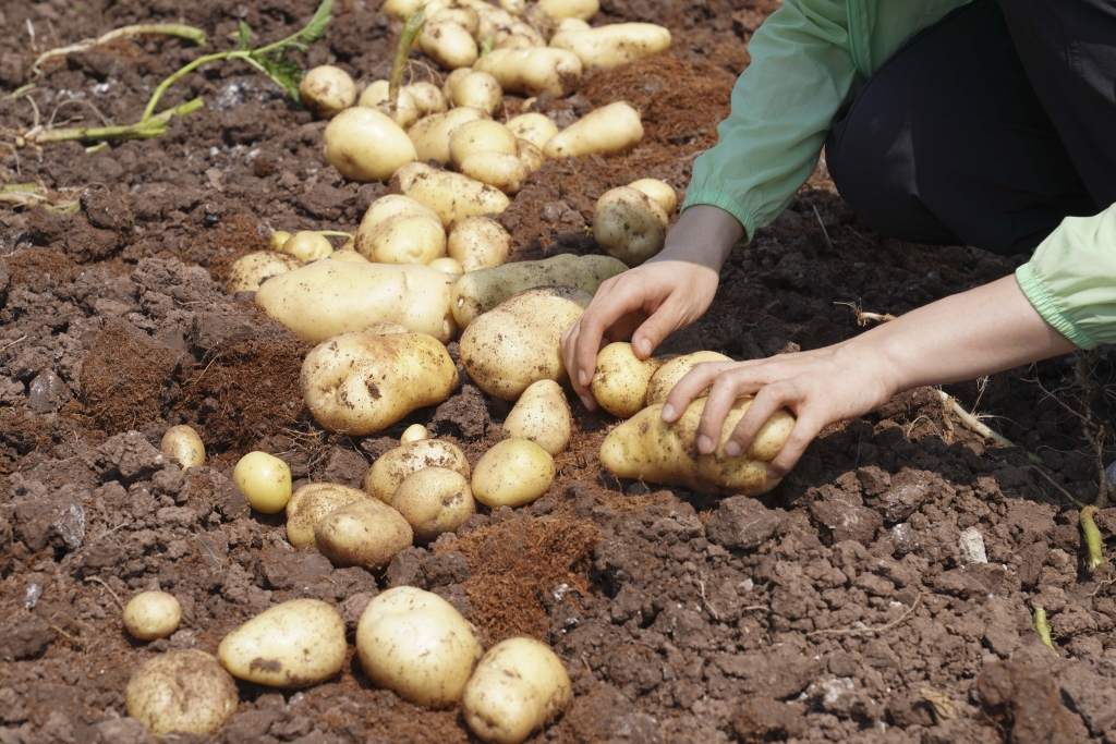农学与生物科技学院2020级农学专业隆平班的刘亦婷同学在收获了自己种的马铃薯后开心地表示:“虽然每次锄地手上都要长水泡,的确很辛苦,但是看到自己种植的土豆,觉得此前起垄、改膜、浇水、施肥所花的功夫都没白费。此次活动是一次将理论付诸实践的难忘经历。”