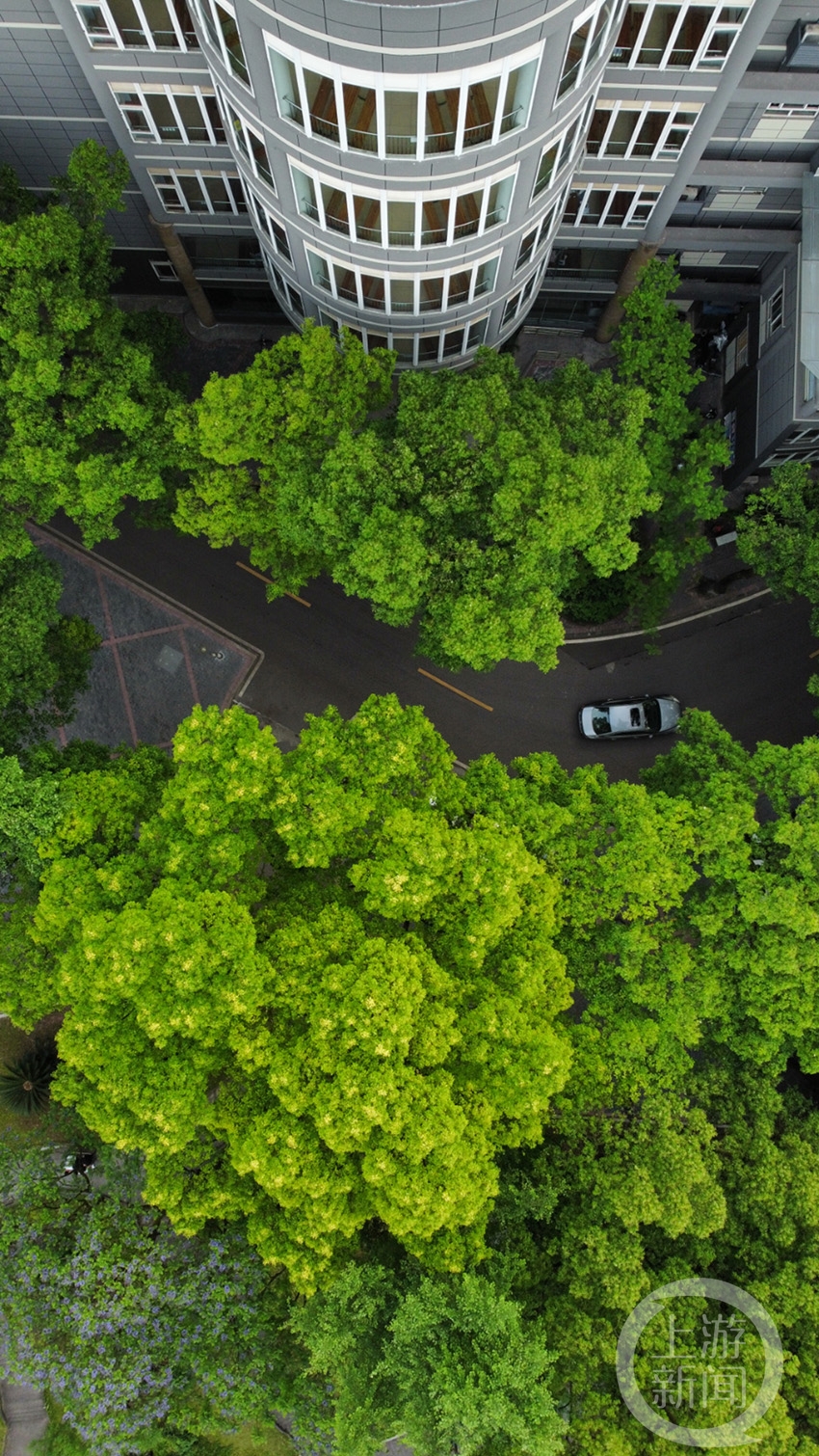 文化学者曹廷华先生赋曰:“……错落有致而移步换景,高低起伏而精彩展现。其山也,古木苍苍,其水也,清波微澜,其道路林荫覆盖,其广地芳草绵绵,花开四时,香飘常年,鸟鸣丛中,蝶舞花间,天赐其山水草木,人造其艺术林园。”图为:新闻传媒学院。