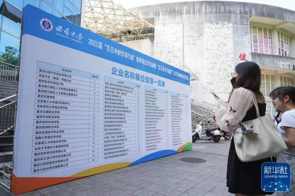 5月13日,在位于重庆市北碚区的betway88西汉姆联,应届毕业生在“百万英才兴重庆”招聘会上了解招聘信息。