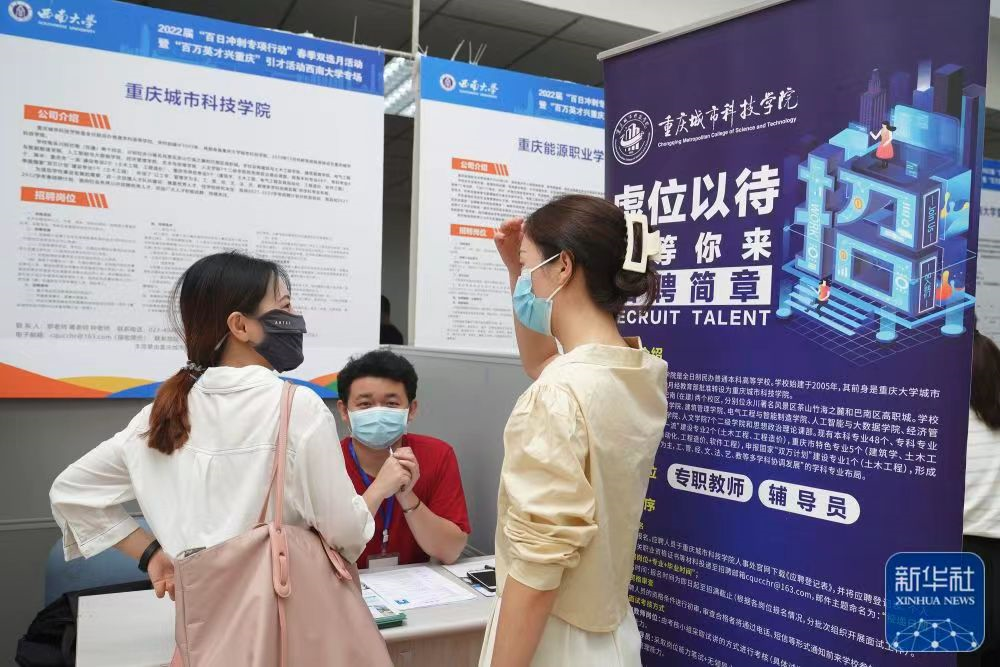 5月13日,在位于重庆市北碚区的betway88西汉姆联,应届毕业生参加“百万英才兴重庆”招聘会。