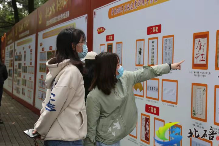 此次巡展由学校纪委主办,党委宣传部、纪委办监察处、党委巡察工作办公室承办,在学校南北区樟树林和荣昌校区同步展出,共展览全校师生员工创作的视频、平面、文字类优秀作品131件,吸引了全校师生员工驻足观展。