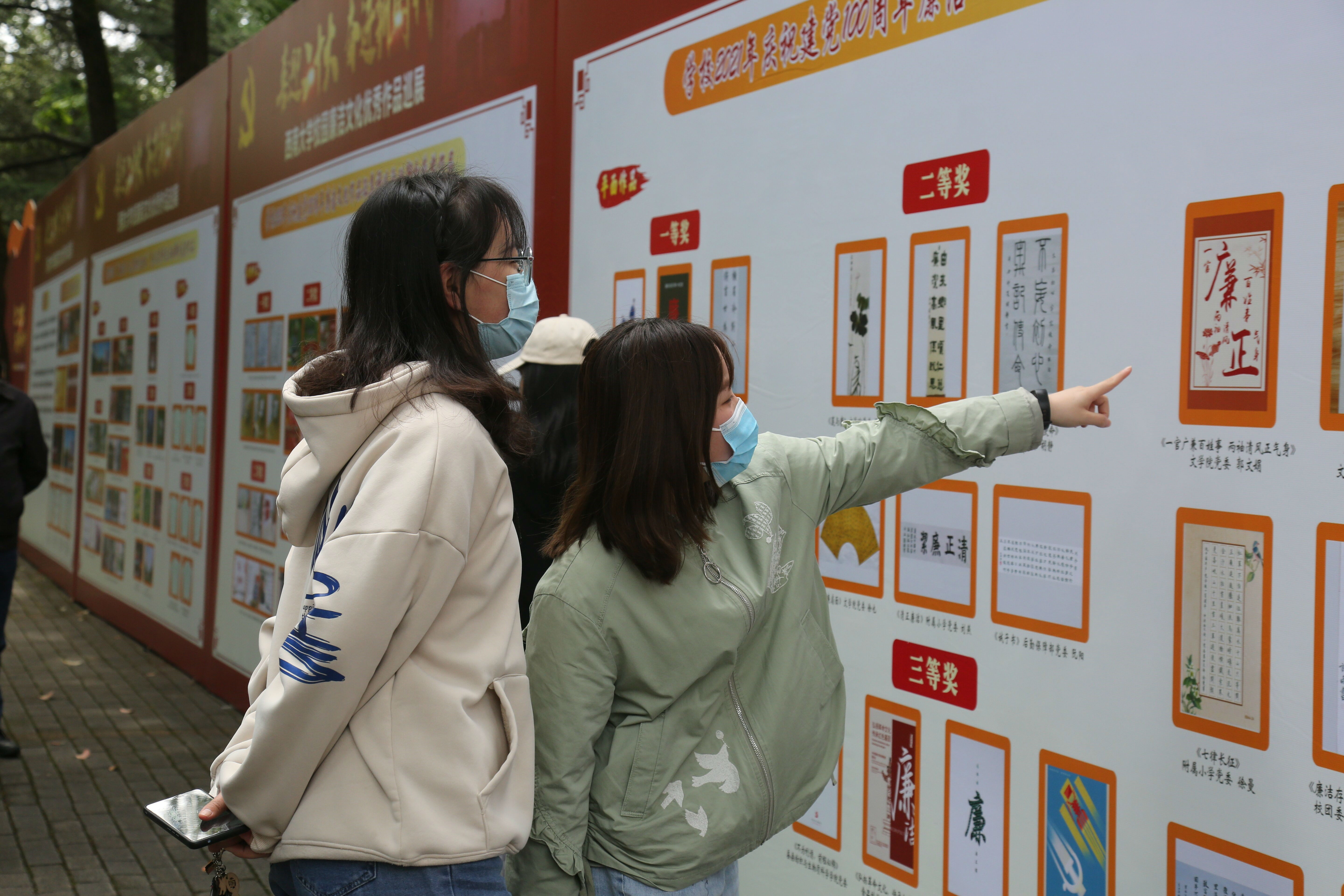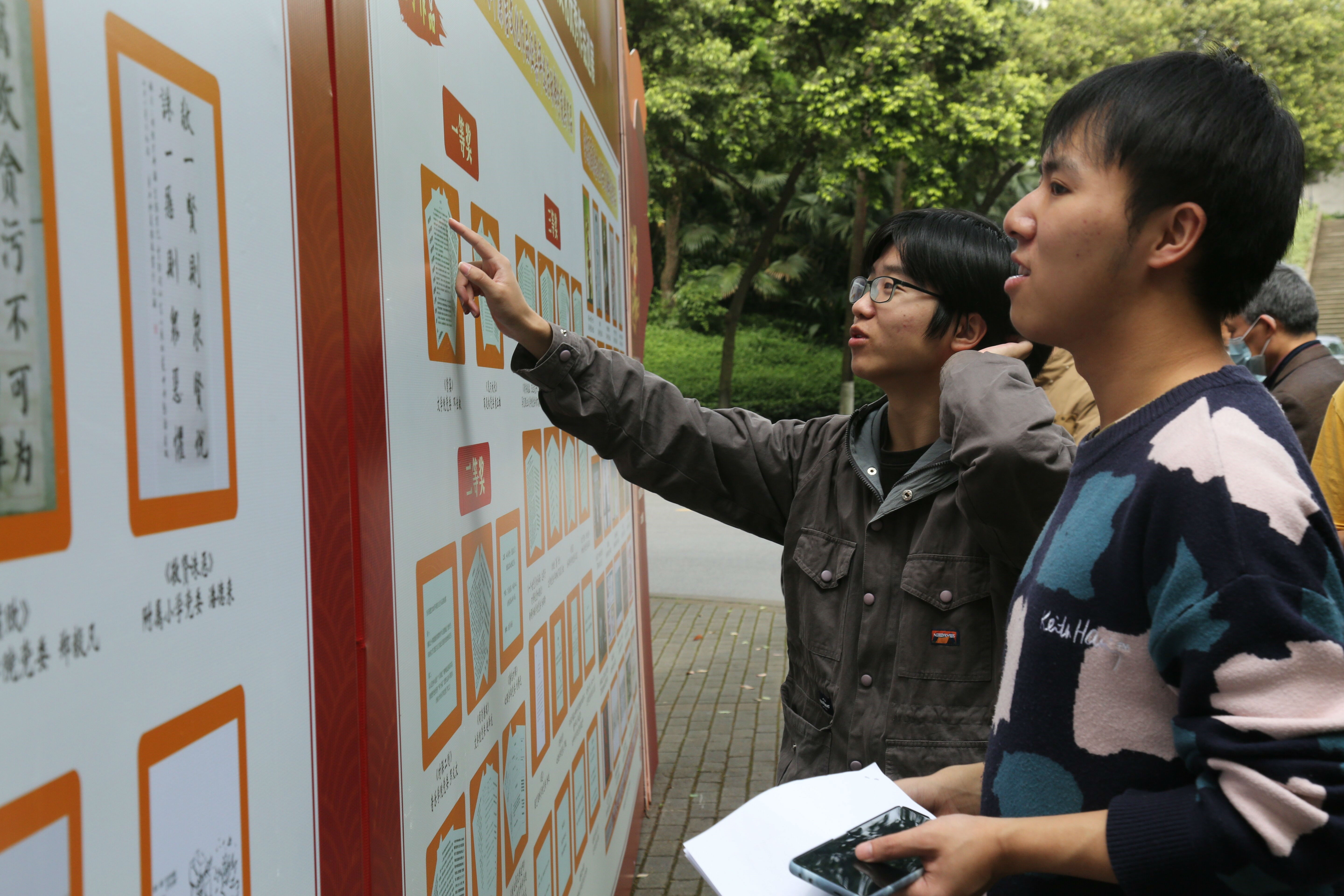 此次巡展在学校南北区樟树林和荣昌校区同步展出,共展览全校师生员工创作的视频、平面、文字类优秀作品131件,吸引了全校师生员工驻足观展。