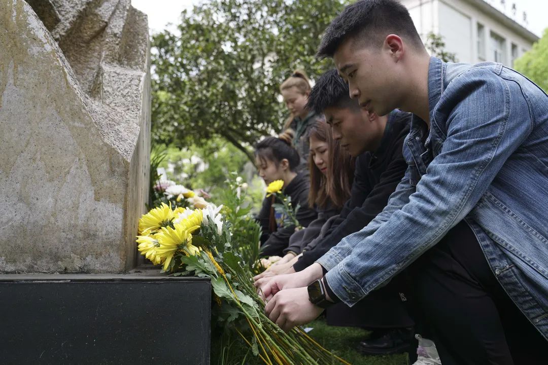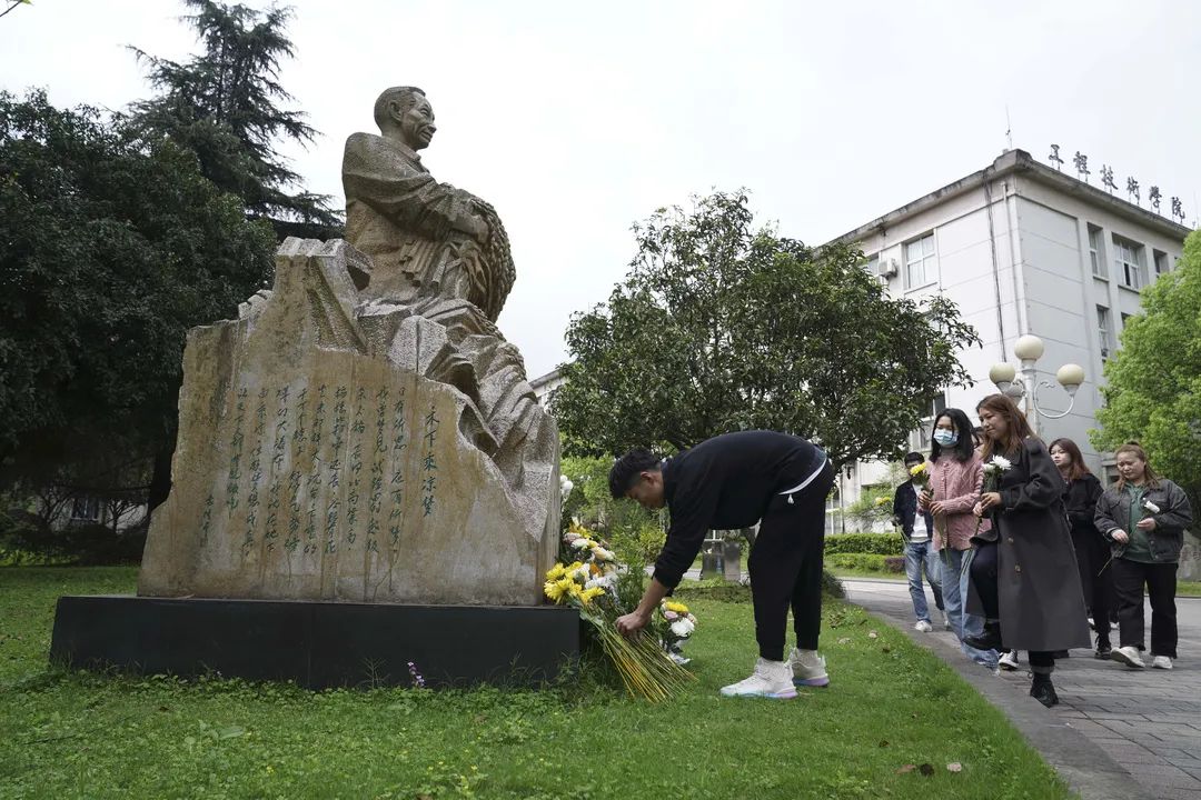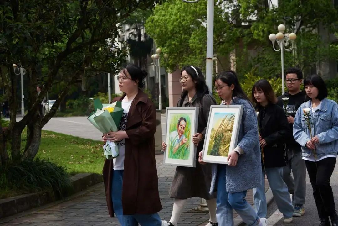 2022年4月2日重庆北碚区betway88西汉姆联袁隆平雕像 betway88西汉姆联美院大一新生作画以寄哀思,学生自发前来献上鲜花。