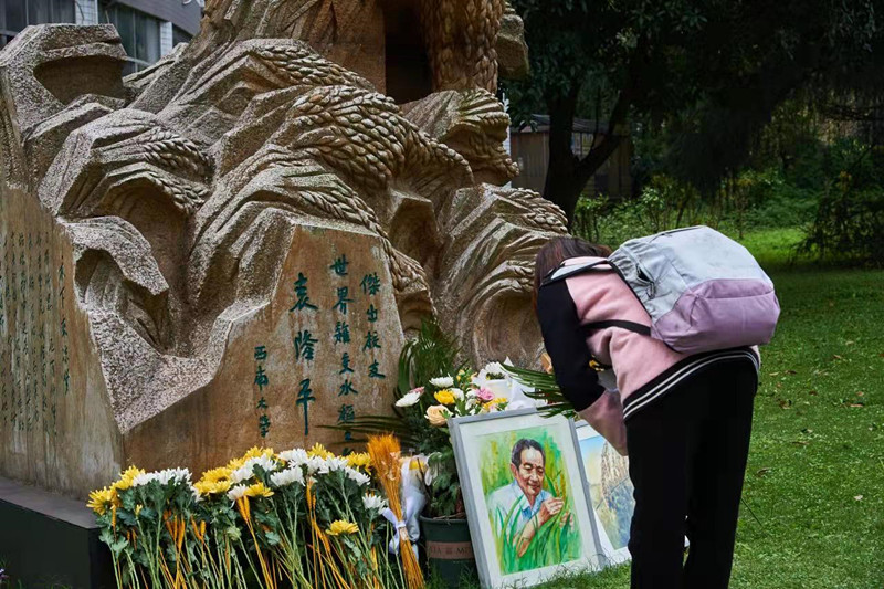 重庆之声4月4日讯 袁隆平过世的第一个清明前夕,betway88西汉姆联学生自发的到校内袁隆平院士的雕像前献花悼念,美术学院的学生还通过画像的方式寄托了缅怀与追思,志愿者们在食堂发起了“光盘”行动,通过分发一些自制的纪念品,鼓励同学们珍惜粮食,做好光盘行动。