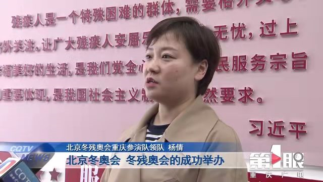 北京冬残奥会重庆参演队领队杨倩告诉记者,北京冬奥会、冬残奥会的成功举办,兑现了中国向国际社会的庄重承诺,作为北京冬残奥会的参与者,她感到特别光荣。