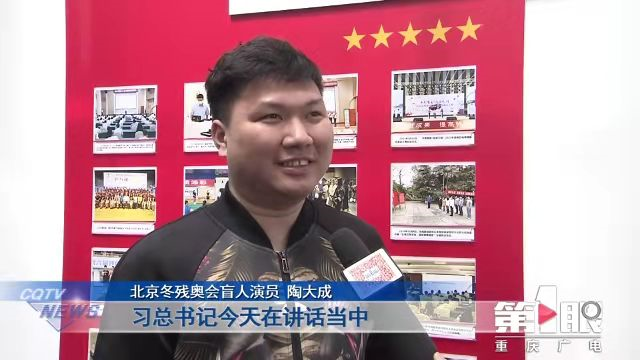 “习总书记今天在讲话当中提到了北京冬残奥会开幕式,当时我们正好身处在现场,回想了当时的一些情景,感到非常开心和荣幸”,北京冬残奥会盲人演员陶大成说道。