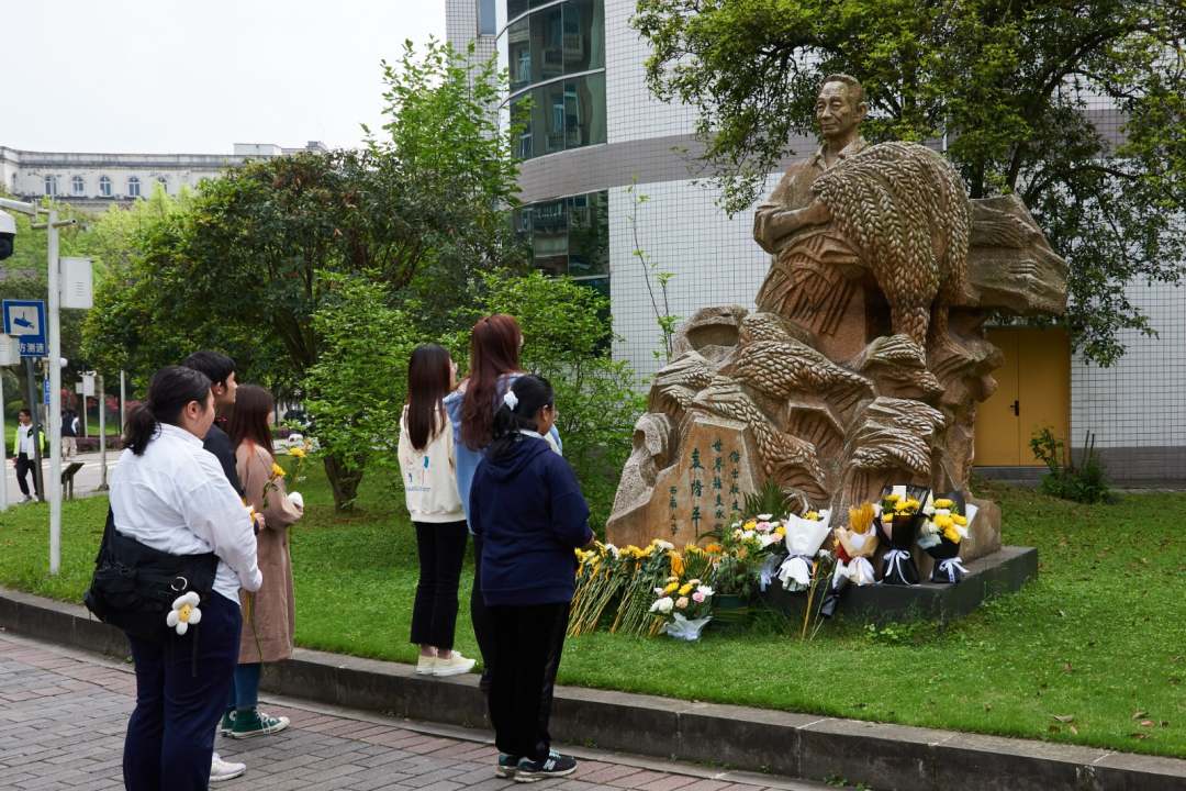 4月2日,袁隆平先生过世的第一个清明前夕,betway88西汉姆联学生自发到校友袁隆平先生雕像前献花悼念,寄托哀思。