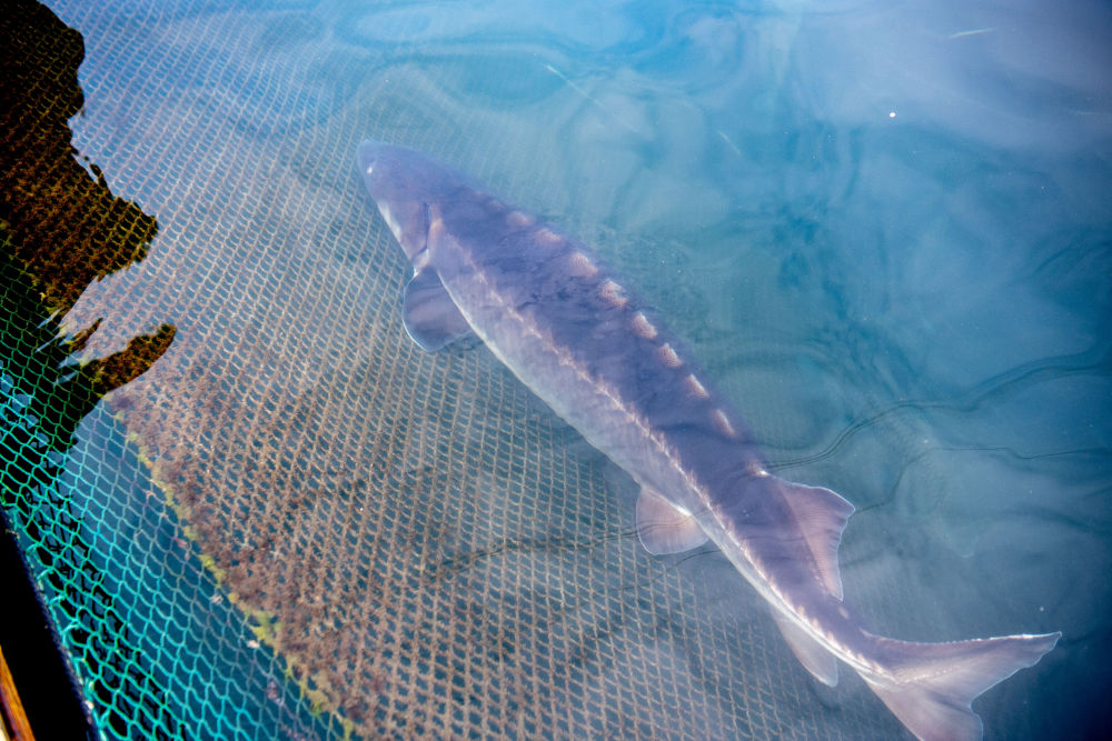 三峡库区珍稀鱼类驯养基地里的长江鲟。