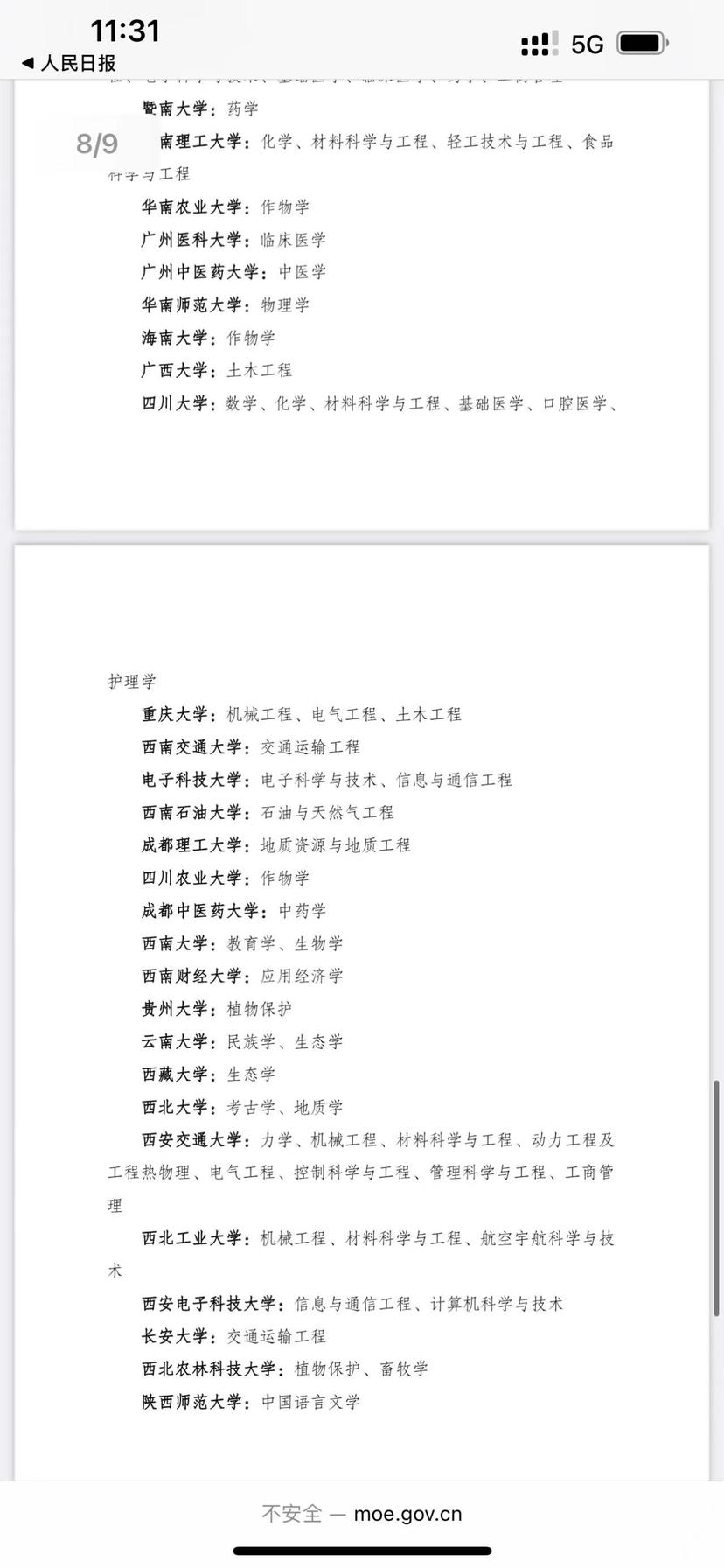 通知中显示,根据国务院《统筹推进世界一流大学和一流学科建设总体方案》,以及教育部、财政部、国家发展改革委《关于深入推进世界一流大学和一流学科建设的若干意见》和《统筹推进世界一流大学和一流学科建设实施办法(暂行)》,经专家委员会认定,教育部等三部委研究并报国务院批准,现公布第二轮“双一流”建设高校及建设学科名单,和给予公开警示(含撤销)的首轮建设学科名单。