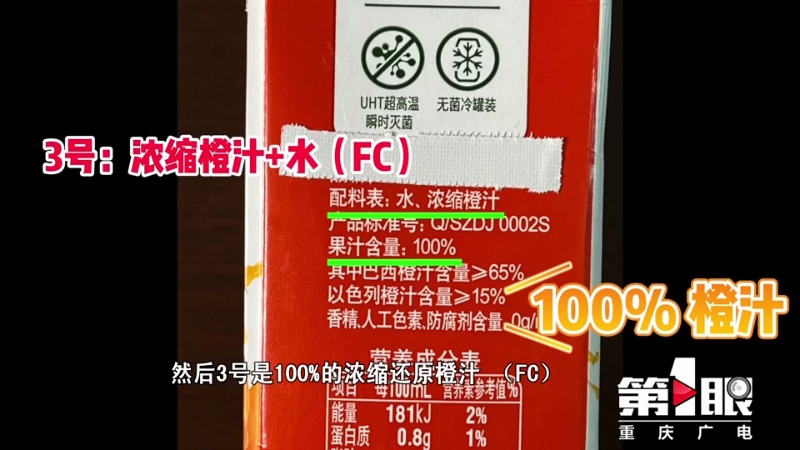 知道了这些各式各样饮品的区别,我们究竟该如何选购橙汁呢?黄博士说有两个方法,第一看产品名称,第二要看配料表。当然,作为正规的上市的饮品应该都是合格产品,大家根据自己的喜好和需求去购买就可以了。