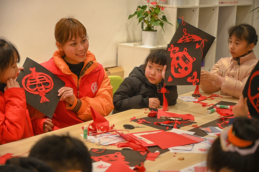 春节临近,因一些孩子的父母不能回家团聚,北碚区民政部门在未成年人救助保护中心和儿童之家开展陪伴活动,组织儿童督导员、社工等志愿者和孩子们一起玩游戏、做手工,温暖孩子们的寒假生活。