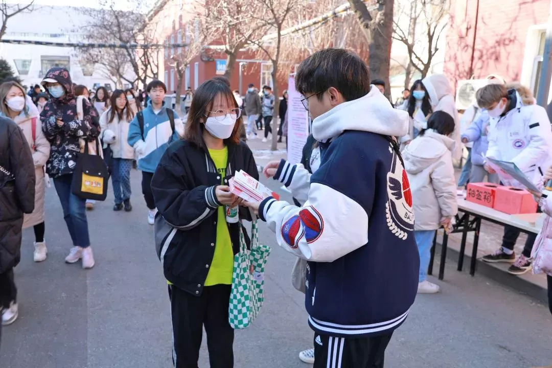 图为沈阳大学防艾志愿者在校内发放防艾宣传材料