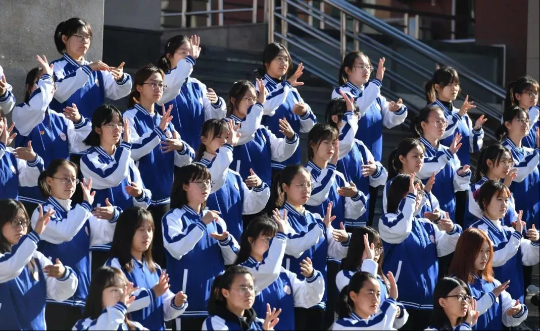 图为山西师范大学防艾手语操活动