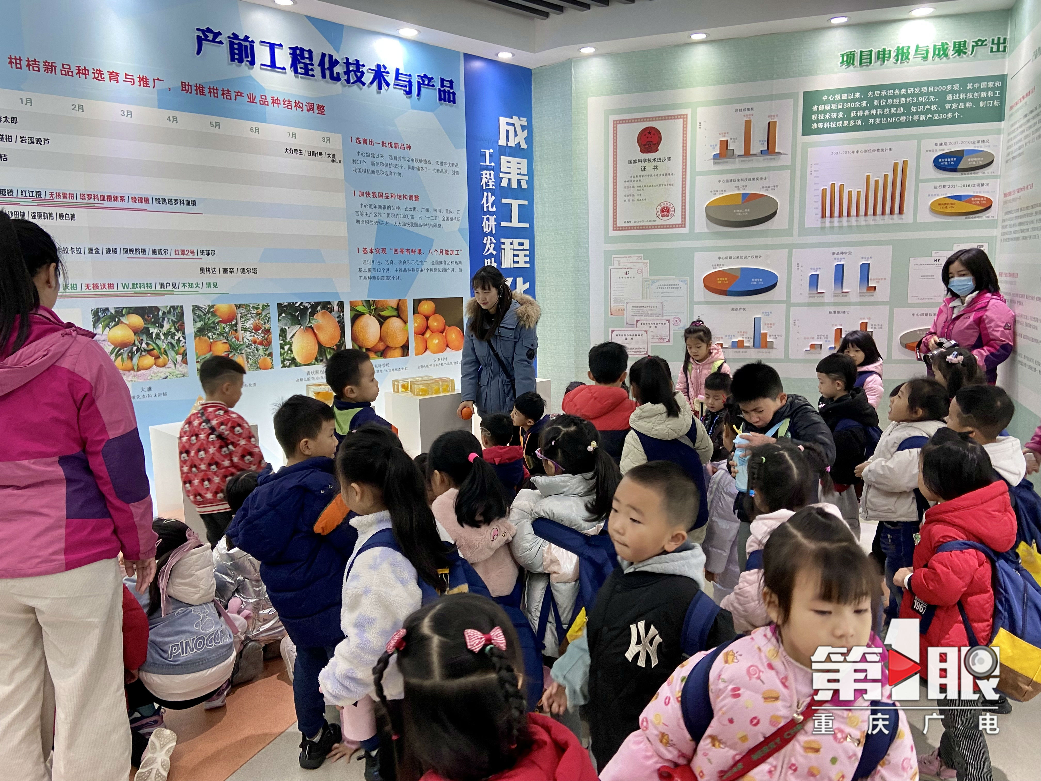 在柑桔研究所的展示厅里,小朋友们你一句我一句“这个是做什么的哦?”“这是什么橘子呢?”叽叽喳喳的提问中,betway88西汉姆联柑研所的研究生志愿者们对柑橘的相关知识进行了生动详尽的介绍。
