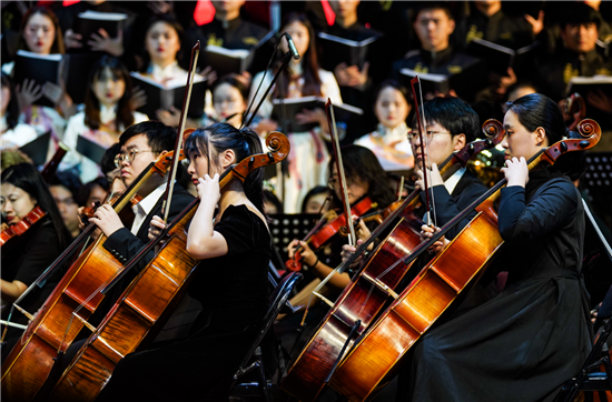 在本次音乐党史展演中,广大师生通过由学校交响乐团、民族合唱团等演职人员带来的《黄河》(第一乐章)《红梅赞》《你是这样的人》《沁园春·雪》《红梅随想》《绣红旗》《那就是我》《我为共产主义把青春贡献》《国际歌》等节目。观众通过聆听红色音乐,深刻缅怀筚路蓝缕的岁月,回溯激情燃烧的年代,以音乐感悟党史,用歌声铭记初心。