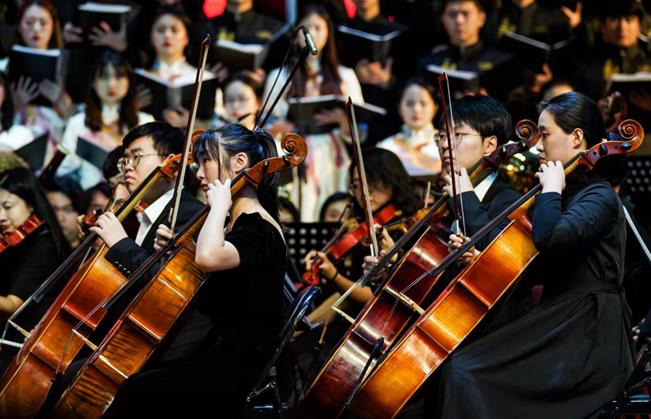 在本次音乐党史展演中,广大师生通过由学校交响乐团、民族合唱团等演职人员带来的《黄河》(第一乐章)《红梅赞》《你是这样的人》《沁园春·雪》《红梅随想》《绣红旗》《那就是我》《我为共产主义把青春贡献》《国际歌》等节目。观众通过聆听红色音乐,深刻缅怀筚路蓝缕的岁月,回溯激情燃烧的年代,以音乐感悟党史,用歌声铭记初心。