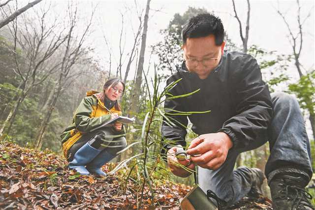 茫茫雨雾中,团队穿行在金佛山的崇山峻岭里。重庆市药物种植研究所工程师任明波对这里如数家珍:金佛山森林覆盖率达95%以上,萃集了5900多种植物,被誉为“东方的阿尔卑斯山”;南方植物的代表南川木波罗和北方植物的代表珠子参等,都能在金佛山觅得踪影,山上还有2700岁的古茶树和2500岁的古银杏树。