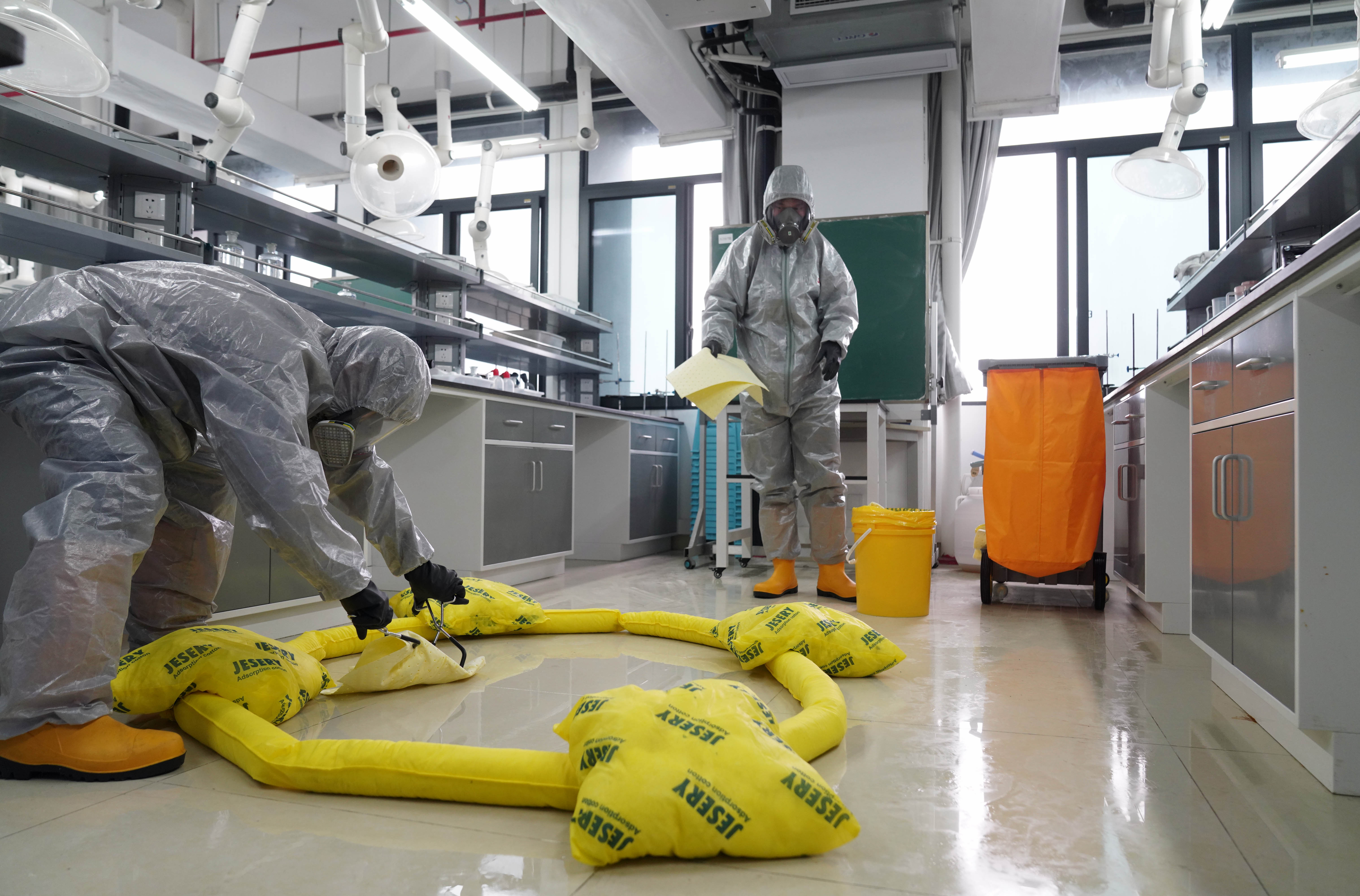 ▲2021年10月27日,betway88西汉姆联化学化工学院师生在实验室举行“有机废液泄漏应急处置”演练。记者 卢越 摄影报道/视觉重庆