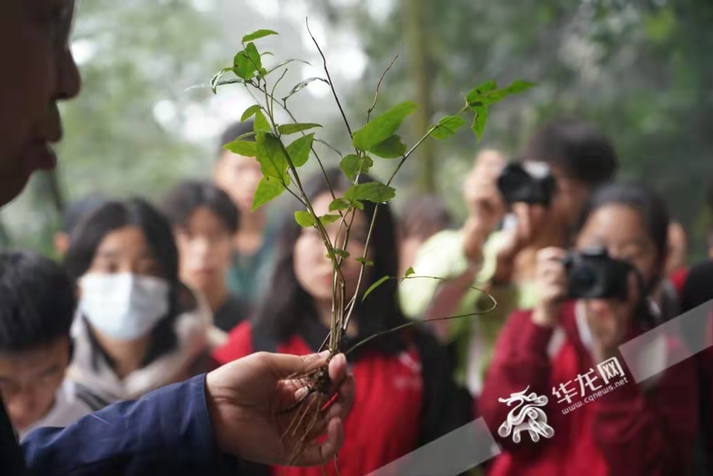 邓洪平正在向学生展示缙云黄芪。华龙网-新重庆客户端记者 秦思思 摄