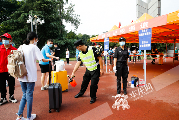 “今年的迎新方案发生了变化,不设集中迎新点,所以对志愿者的需求非常大。”志愿者2020级农学与生物科技学院何毅介绍,早上她与其他志愿者很早就来到这里,依次排队走到校门外,接每一位下车的新生。“先是帮他们提一下行李,随后查看新生的48小时内核酸检测阴性证明,还有身份证、录取通知书等,随后由其他工作人员检查健康码和测体温等。”何毅说,随后她会陪同新生到宿舍放下行李,再到第四运动场接受入校的核酸检测,整个入校过程不接触其他人,不出入公共场所,不聚集。