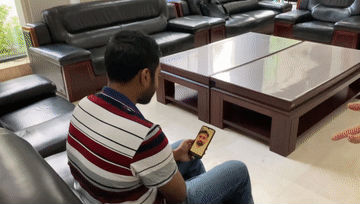 李浩(Usama Kalim)正在和远在巴基斯坦的弟弟视频连线。新华社记者刘恩黎摄