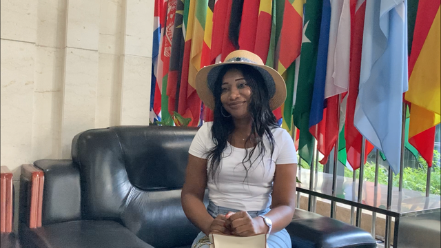 几内亚学生柯娜(Sarata Keira)接受采访。新华社记者刘恩黎摄