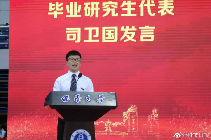 司卫国说他虽然没有如黄国平师兄一般“穷且益坚,不坠青云之志”的传奇故事,但也用六年的时光思考:为何我们总是坚信,知识可以改变命运?他说自己也找到了答案:“是党和国家指引的正确方向,是民族复兴的伟大时代,给予了我们成长、贡献和发展的机会!只要我们保持对知识的渴望,对创新的追求,与时代并肩同行,我们的人生必将远大可期!”