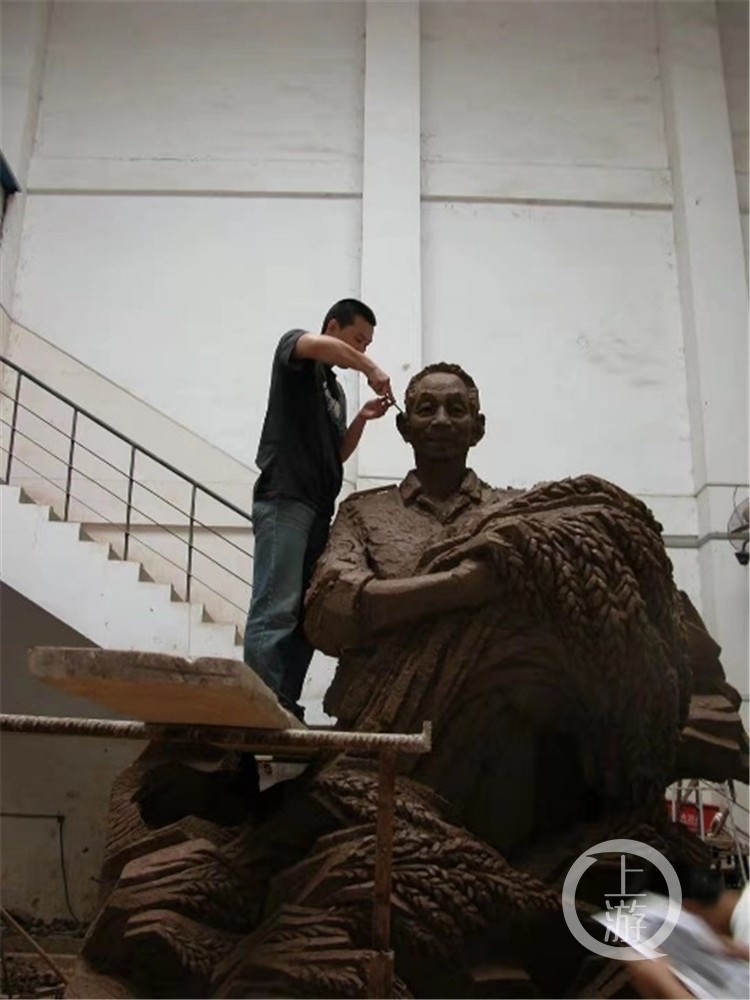 为此,王林把原本雕像的稻穗长度增长了一截:“稻穗像瀑布一样在田地里起伏,人在稻穗下乘凉,这就是袁老梦里水稻的样子。”