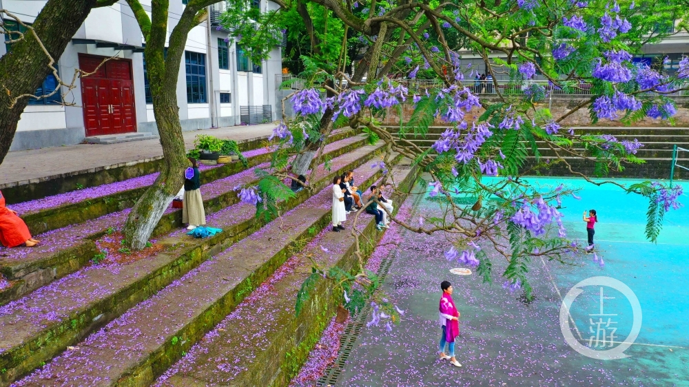 初夏的风轻轻柔柔,一串串紫色“铃铛”随风摇曳,大家常常被这蓝色的温柔吸引,在树下拍照留念。