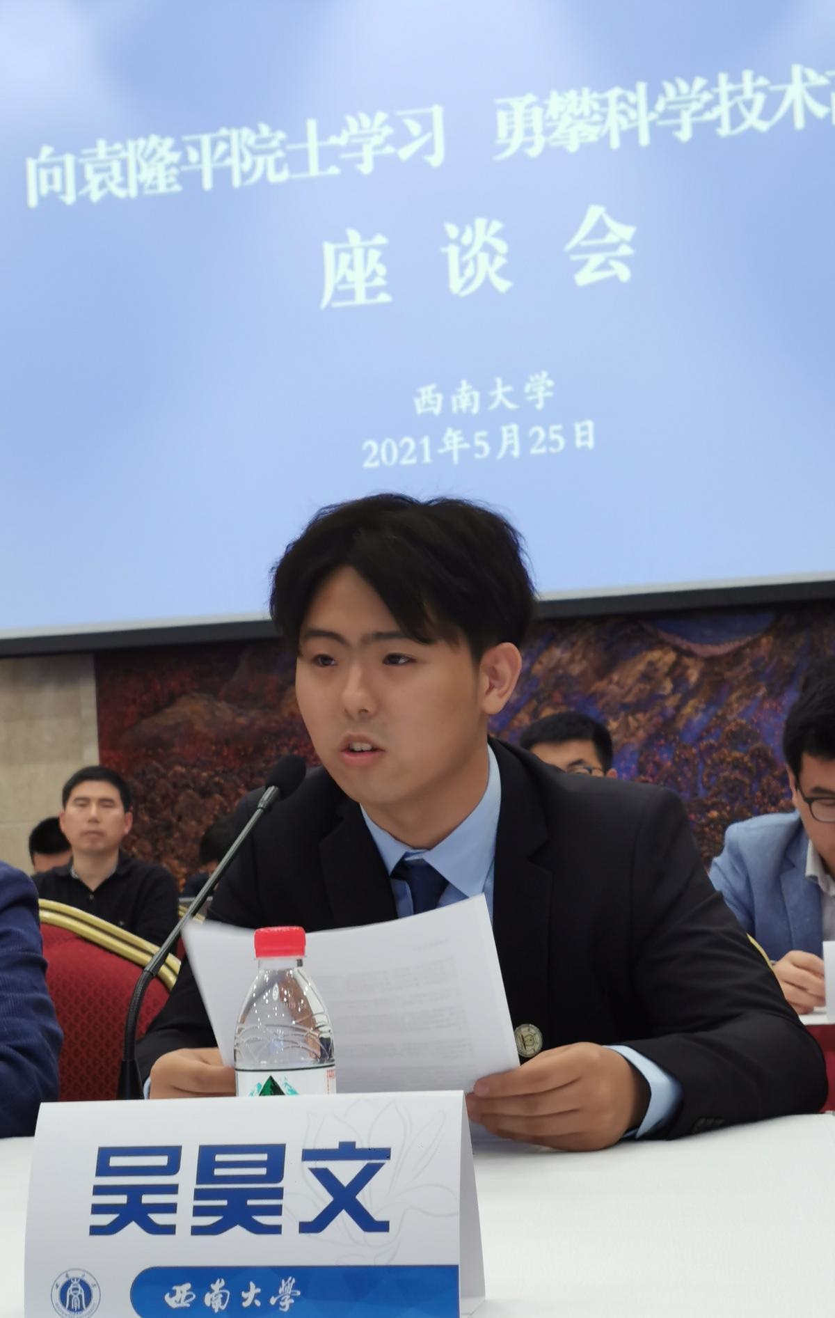 “袁隆平奖学金”获得者、研究生代表万媛媛,“袁隆平班”本科生代表吴昊文等纷纷表示,要继续袁老的遗业,将个人梦融入中国梦,做一颗向上的种子,把论文写在大地上。
