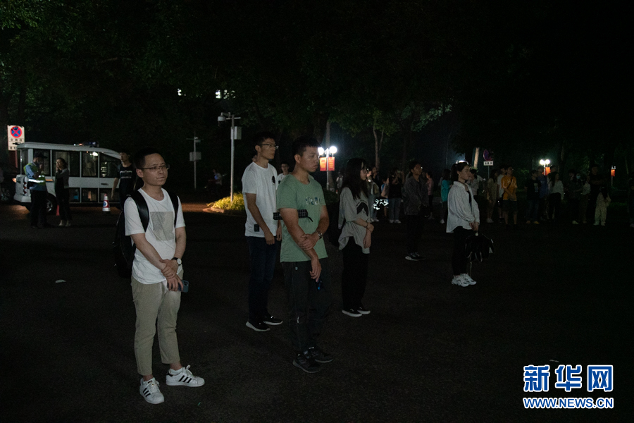 夜幕中不断有师生前来献花 新华网耿骏宇摄