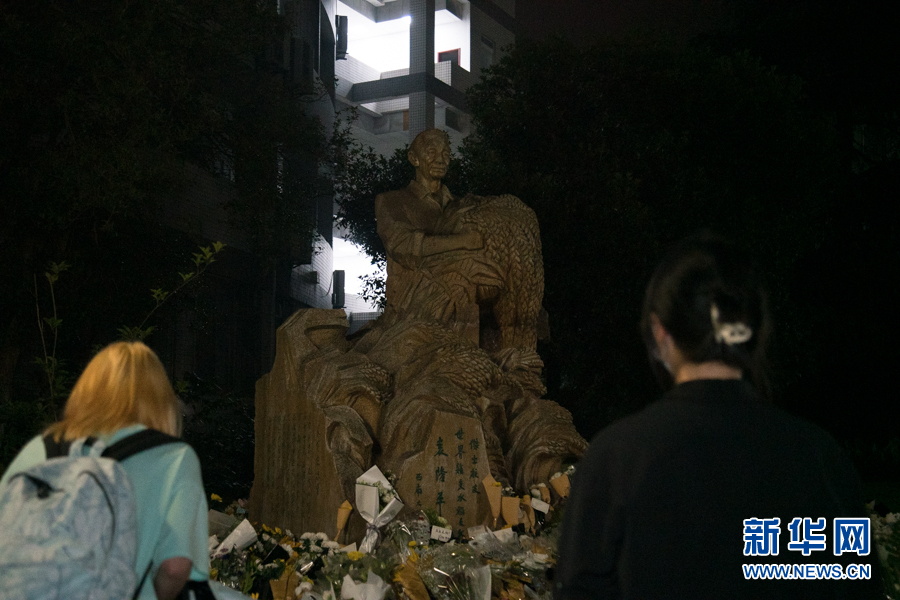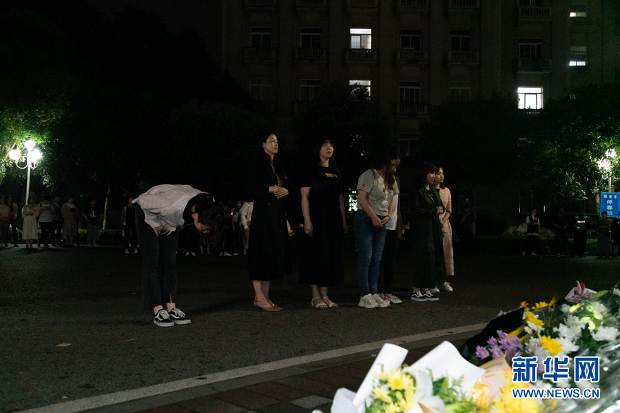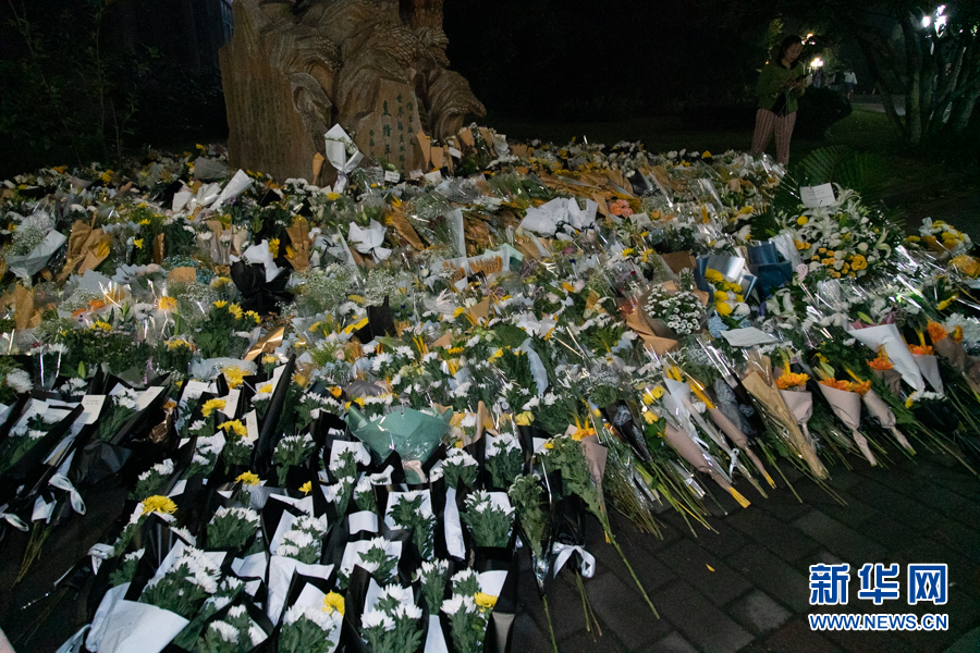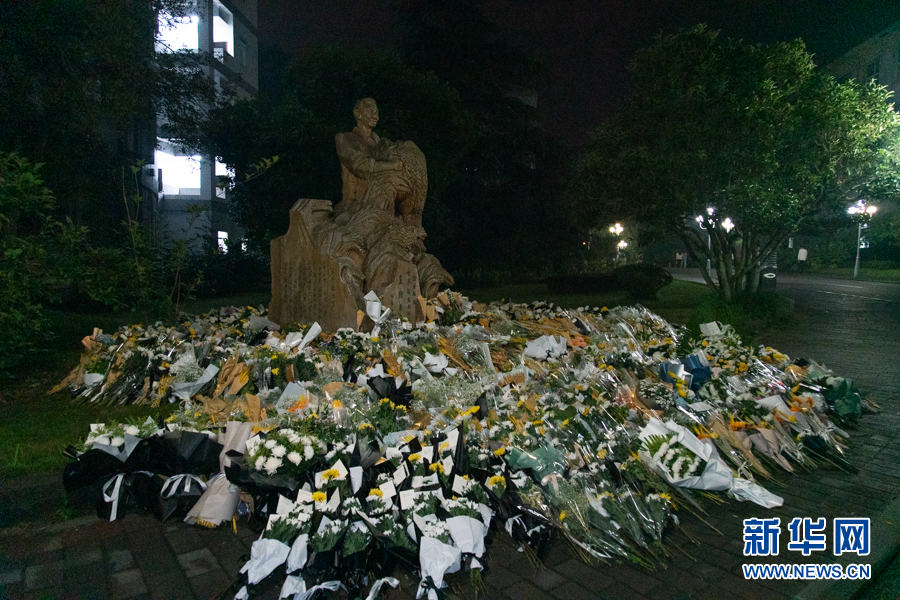 到了当天深夜,前来敬献鲜花的师生依旧络绎不绝 新华网耿骏宇摄