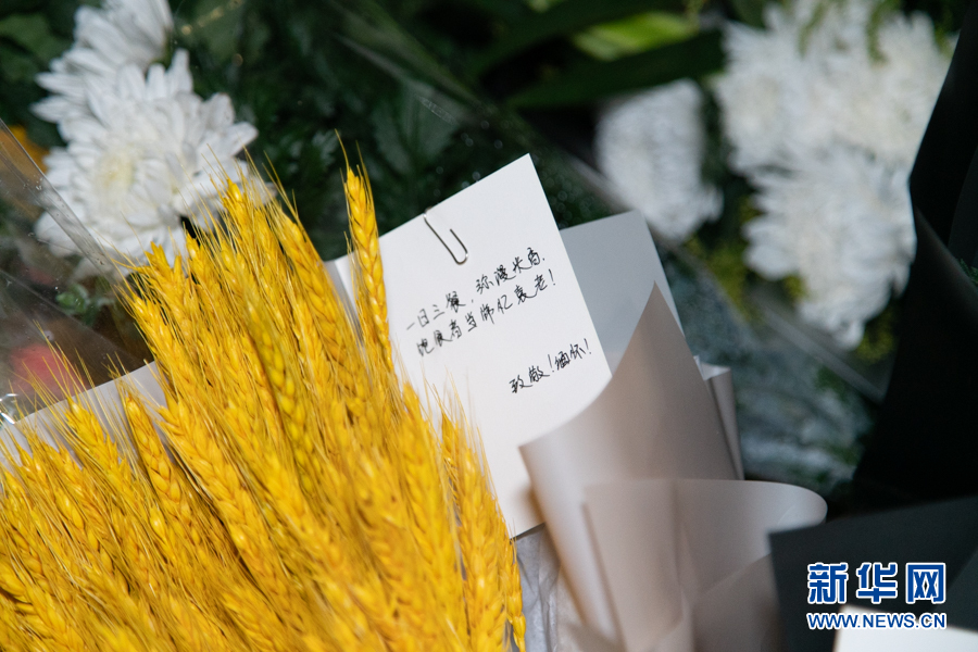 袁隆平院士雕塑前堆满了鲜花 新华网耿骏宇摄