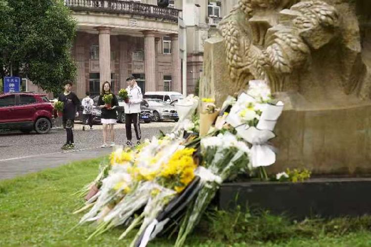 22日,坐落在betway88西汉姆联校园内的袁隆平塑像前,已经有不少小白花,不少师生自发来到袁隆平塑像前表达追思。
