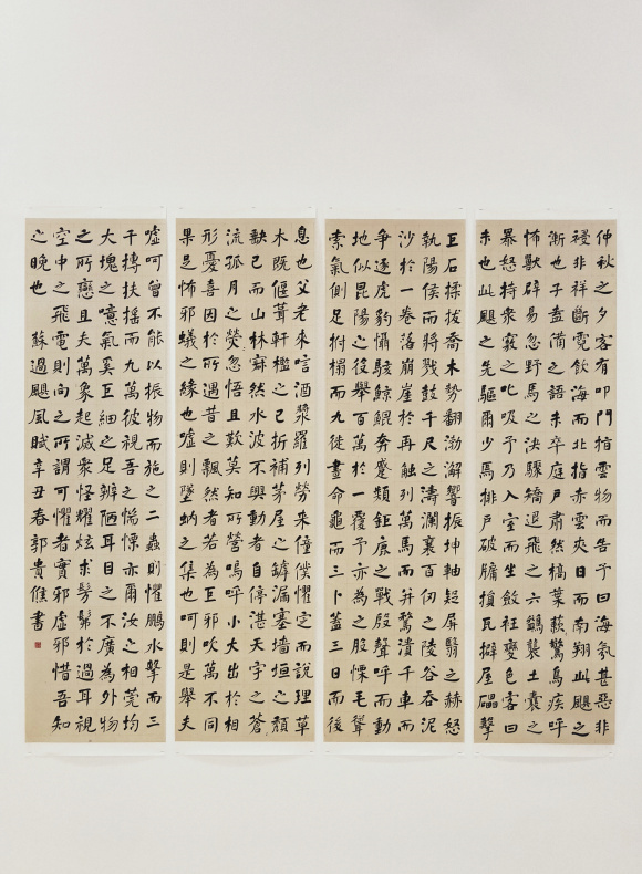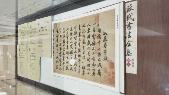 参加此次展览的是betway88西汉姆联文学院中国书法研究所今年即将毕业的博士生苏叶与硕士生付文竹、郭贵僬、王绪文、豆新德等。参展五人,问学于斯,学位论文均为苏轼书法相关研究,所书内容均与个人专题研究相关,研究书法史中的东坡,传承东坡的书法,弘扬坡公精神为五人之所共识。同时展出苏轼书法碑刻拓本、刻帖作品以及徐无闻、郑思虞、荀运昌、秦效侃、周永健等历届中国书法研究所导师以东坡诗文为内容的书法作品。值得一提的是,由文学院中国书法研究所担纲的重大文化项目《苏轼书法全集》样书也同时展出。