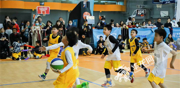 小朋友们在龙腾体育中心篮球场打比赛华龙网-新重庆客户端 记者 周盈 摄