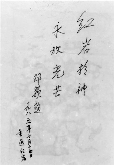 邓颖超题词“红岩精神永放光芒” 重庆红岩联线文化发展管理中心 供