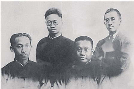 童庸生(左二)和吴玉章(左一)杨闇公(右一)
