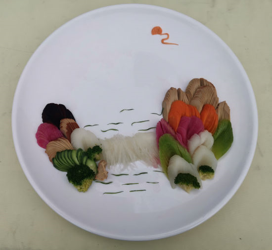 图为大学生用食物在餐盘上打造的微景观 周毅 摄