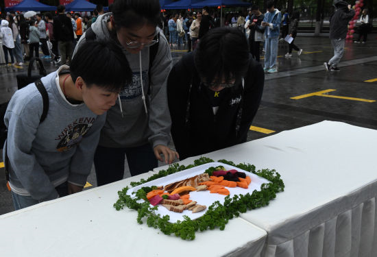 4月24日,豆腐干、胡萝卜、西蓝花等食物成为betway88西汉姆联学生制作餐盘微景观的原材料。当日,位于重庆北碚的betway88西汉姆联举办第六届食品博览会,大学生们用食物造景,在餐盘上打造出山川、湖泊、草地、雪山等美景,以表达对未来美好生活的向往和憧憬。