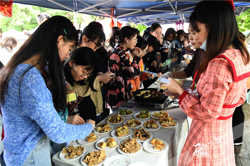 现场专门准备了各种美食供学生品尝。华龙网-新重庆客户端 刘钊 摄