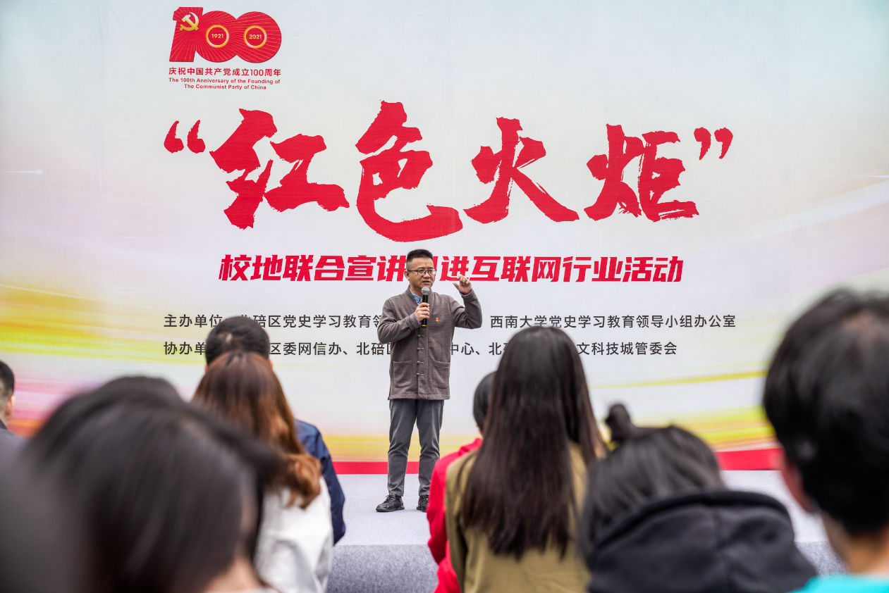4月20日,北碚这场融合了油画、快板、评书、演讲等多种艺术形式的党史学习教育面向互联网行业轮番“开讲”。
