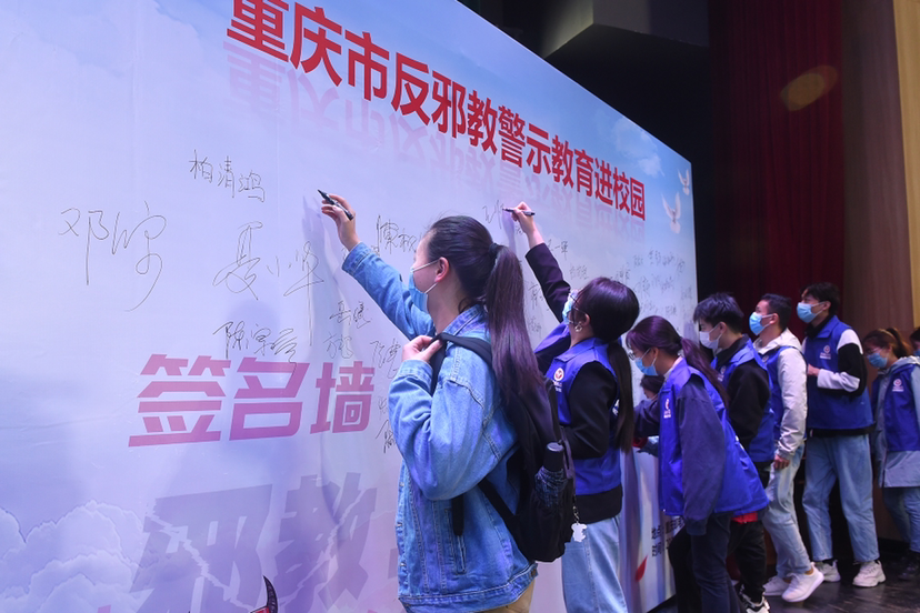 随后,重庆市反邪教协会秘书长乔广志向广大师生讲授邪教骗人伎俩及防范邪教方法,引导师生正确识别邪教、远离邪教。
