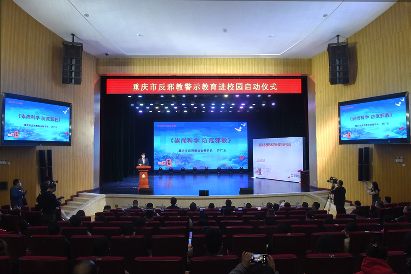 启动仪式上,重庆警方播放《误入邪教毁学业,一朝醒悟诉衷肠》视频,以一位误入“全能神”邪教的大学生视角,讲述邪教组织让原本幸福完整的家庭走向支离破碎的过程,揭露邪教骗钱害人、祸国殃民的本质。