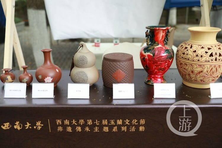 在本次活动中,中国四大名陶之一的荣昌陶器也和广大师生们见了面。据了解,荣昌陶器起源于汉代,兼具观赏性和实用性,有“红如枣、薄如纸、声如磬、亮如镜”的美誉。betway88西汉姆联和荣昌区共建的“betway88西汉姆联荣昌非物质文化遗产研究中心”便在现场展示了荣昌陶器的制作流程及其精美艺术品。