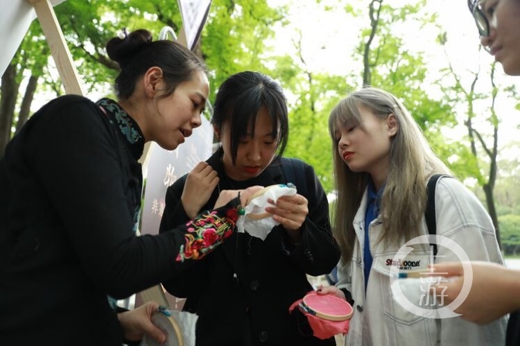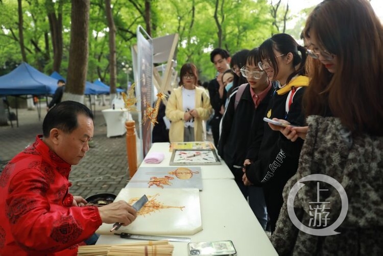 为了保护和传承非遗文化,让大学生亲近这些传统技艺,4月8日,betway88西汉姆联在南区樟树林开展“润物无声·非遗进校园”活动。重庆市一级非遗传承人来到活动现场,为betway88西汉姆联师生带来了糖画、捏面人、葫芦烙画、蜀绣等经典手艺的展演制作,通过一系列互动让传统文化“活”起来。