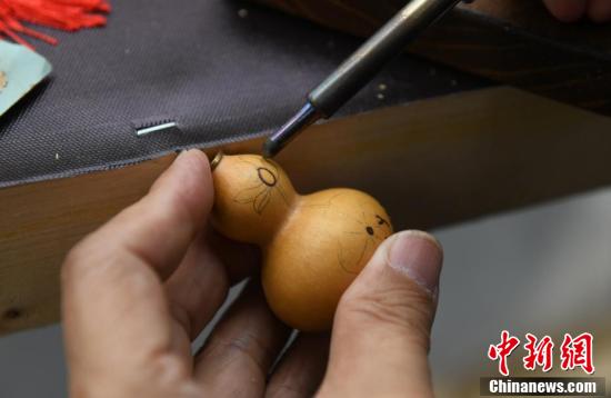 活动现场的烙画葫芦制作工艺展示