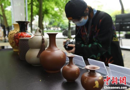 展示的荣昌陶器吸引参观者驻足拍照
